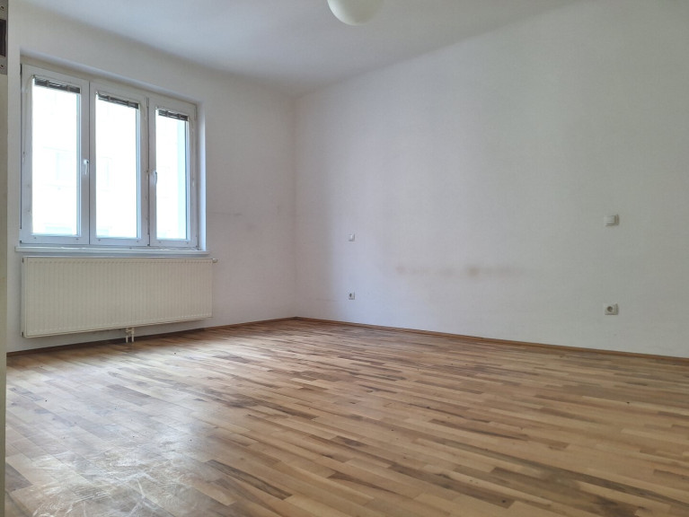 Diese großzügig geschnittene 2-Zimmer Eigentumswohnung liegt im 2. Liftstock eines im Jahre 1957 errichteten und im Jahr 2013 komplett thermisch-energetisch sanierten Gebäudes. Sie verfügt über ein rund 20m² großes Schlafzimmer und einen dank Zusammenlegung von Küche und Wohnzimmer über 33m² großen Wohn- und Essbereich. Das im Zuge dieser Umbauten ebenfalls erweiterte Bad mit Fenster ist mit einer großen Eckbadewanne (inkl. Whirlpool-Funktion), einer Dusche, einem Waschtisch sowie einem Waschmaschinenanschluss ausgestattet. Ein zentraler Vorraum und ein separates WC vervollständigen den Grundriss, und ein Kellerabteil sorgt für zusätzlichen Stauraum.