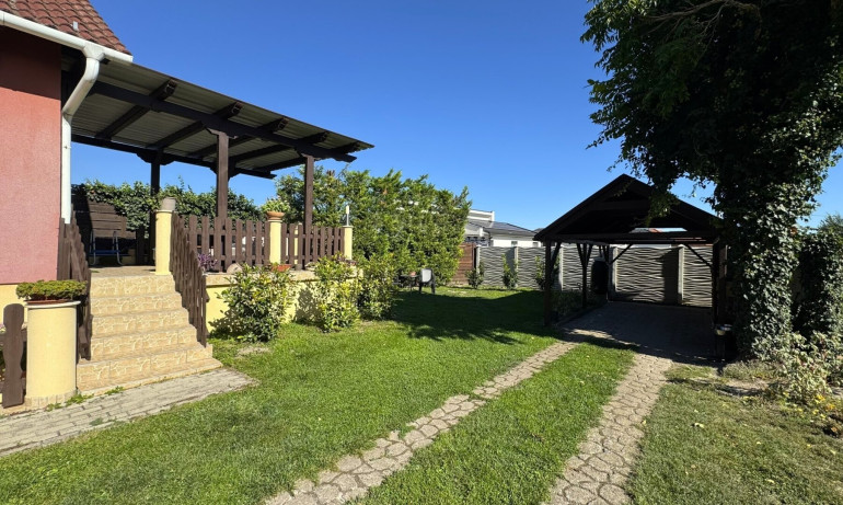 A gyönyörű, tágas teraszon egy 4x2 méteres, beépített medence kapott helyet, amely tökéletes lehet egy frissítő csobbanásra a szaunázást követően – például, ha a pincében szauna kerül kialakításra. A kertben két kocsibeálló és egy fúrt kút is rendelkezésre áll.