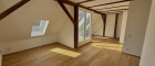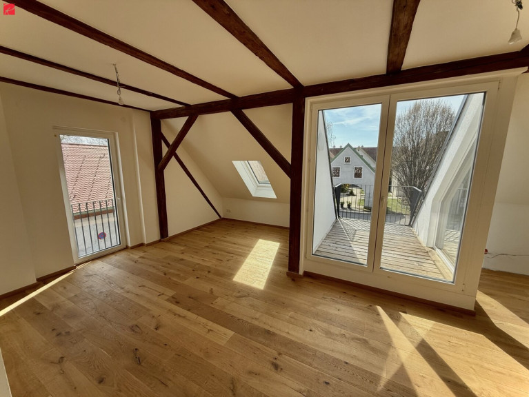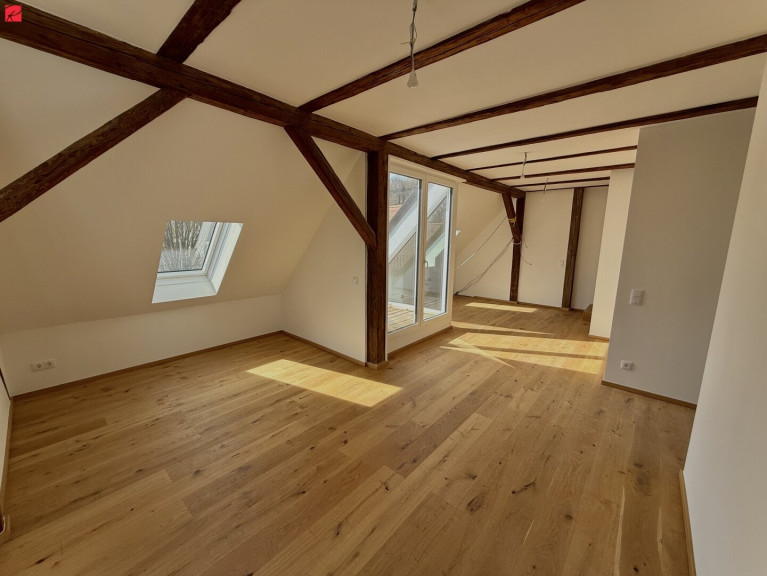 Die Wohnung selbst überzeugt mit einem einzigartigen Wohnkonzept, verteilt auf ein Schlafzimmer, eine Galerie und die Wohnraumfläche, welche modernen Komfort mit stilvollem Charakter vereinen. Bereits beim Betreten spürt man die besondere Atmosphäre: lichtdurchflutete Räume, großzügige Raumhöhen und charmante, sichtbare Holzbalken im Landhausstil verleihen der Wohnung eine warme und zugleich hochwertige Ausstrahlung.
