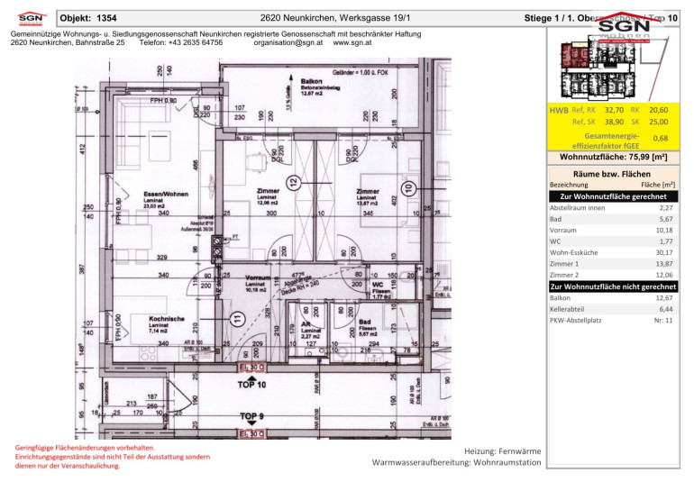 Ein besonderes Plus ist das große, zugeordnete Kellerabteil mit rund 6,50 m², das zusätzlichen Stauraum bietet. Zudem gehört ein Pkw-Abstellplatz (Nr. 11) fix zur Wohnung.