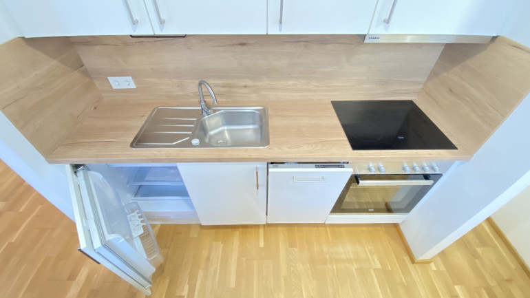 Fliesen, Parkettboden, Einbauküche, Dusche