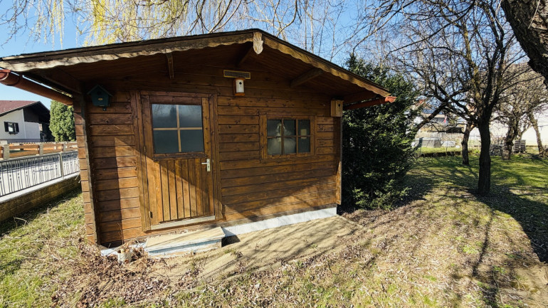 Auf dem Grundstück befinden sich mehrere Nebengebäude, darunter ein charmantes Holz-Gartenhaus neben dem Einfahrtsbereich sowie ein weiteres Gartenhaus mit einer großen, überdachten Gartenlaube. In diesem Gartenhaus sind Wasser-, Strom- und Kanalanschluss vorhanden, zudem ist ein WC installiert. Damit lässt sich das Grundstück sofort als Feriendomizil, Freizeitgarten oder Schrebergarten nutzen.