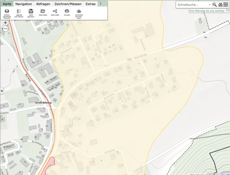 - Das Grundstück liegt im Bereich der gelben Gefahrenzone