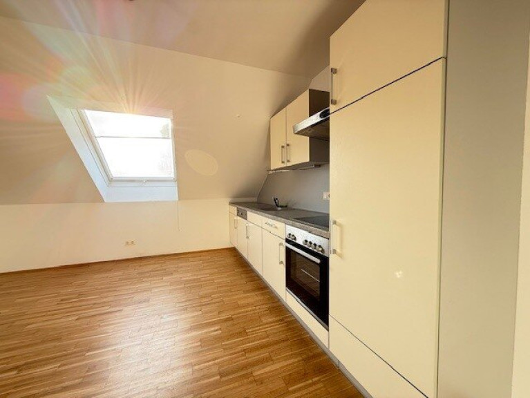 Die offen gestaltete Wohnküche bildet das Herzstück der Wohnung und bietet ausreichend Platz für Kochen, Essen und gemütliches Beisammensein. Die Galerie sorgt für ein besonderes Raumgefühl und erweitert die Nutzungsmöglichkeiten erheblich.