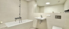 - 1x Bad mit Wanne, Waschbecken, Handtuchwärmer und WC