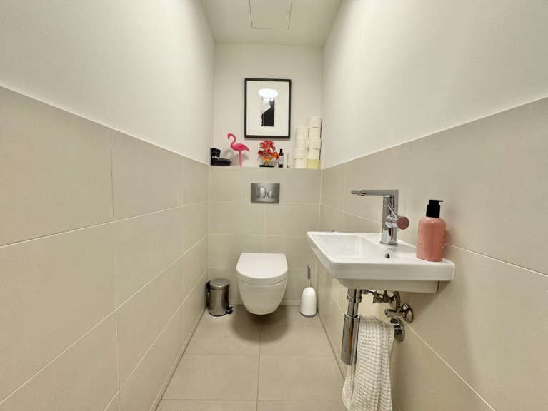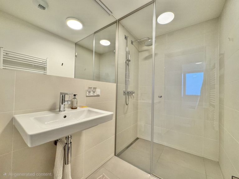 - 1x Bad mit Dusche, Waschbecken und Handtuchwärmer