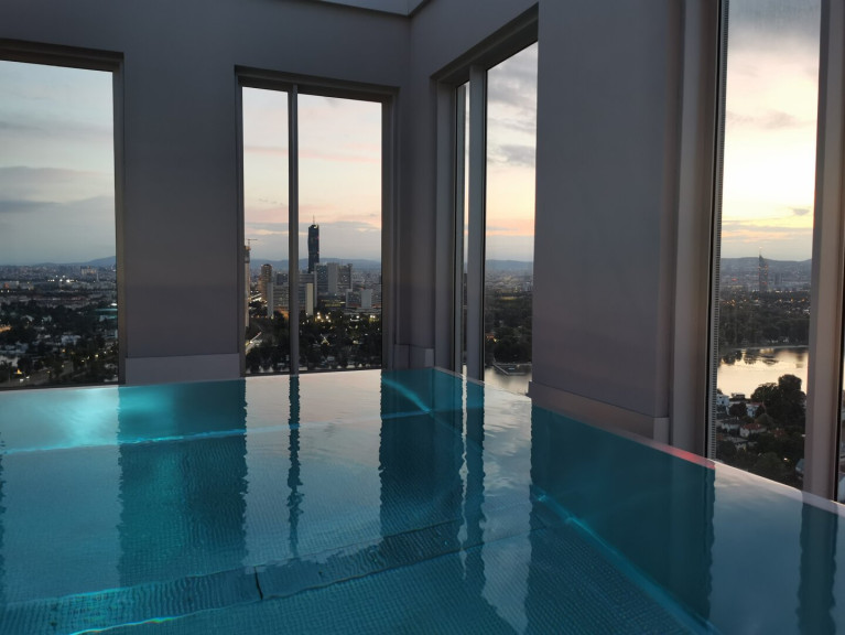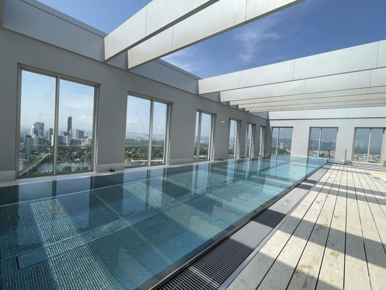 - Rooftop-Pool mit 19m Länge und Sonnendeck (33. Stock)
