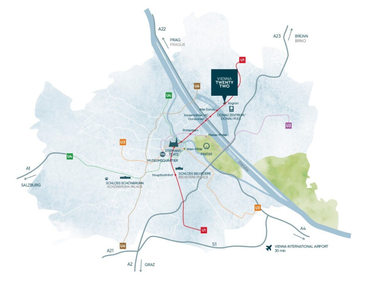 Die Wohnung befindet sich im 24. Liftstock des VIENNA TWENTY TWO und liegt direkt an der Ubahn-Linie U1 Kagran, nahe dem Donauzentrum und der Vienna International School (VIS). Das Objekt besticht durch Ihre ausgezeichnete Raumaufteilung, den wunderschönen Ausblick über Wien sowie der hochwertigen Ausstattung und dem energieeffizienten Heizungs- sowie Kühlungssystem. Unmittelbar vor der Haustüre fahren die Ubahn-Linie U1 (Kagran), die Straßenbahnlinien 25, 26 und die Autobuslinien 22A, 26A, 27A und 94A. Mit der Ubahn erreichen Sie in nur 10 Minuten den Stephansplatz. Die Infrastruktur bietet Ihnen alles für den täglichen Bedarf. So erreichen Sie fußläufig in wenigen Minuten das Donauzentrum mit diversen Supermärkte, Restaurants, Cafés, Kino, Schulen, Kindergärten, Banken, Apotheken, uvm.
