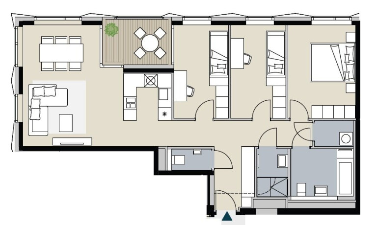 - großer Gemeinschaftsraum mit Küche und Terrasse