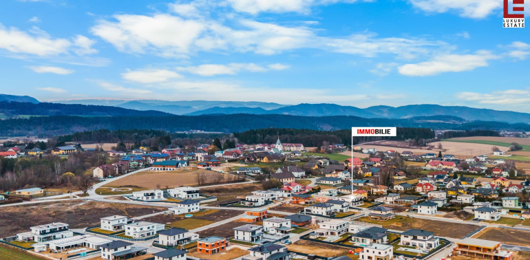 Dieses moderne Wohnhaus befindet sich im Ortszentrum, nahe der Kirche der Marktgemeinde Poggersdorf, östlich der Landeshauptstadt Klagenfurt. Trotz der idyllischen Lage im Grünen findet man eine perfekte Infrastruktur in unmittelbarer Umgebung. In der Gemeinde selbst finden Sie alle Dinge für den täglichen Bedarf sowie eine Apotheke, die Volksschule samt 2 Kindergärten. In 3 Autominuten sind Sie bei der Südautobahnauffahrt Grafenstein mit einer Tankstelle, einem Supermarkt und einer Bank. Sportbegeisterte und Naturliebhaber finden gut markierte Lauf-, Wander- und Radwege vor der Haustüre. Wer Segeln oder Surfen möchte, ist in ca. 20 Min. am Wörthersee oder in 10 - 15 Minuten am Klopeinersee, dem wärmsten Badesee Österreichs. Zusätzlich haben Sie noch einen kleinen Natur-Badeteich in der Nachbargemeinde. Im Winter garantiert die Nähe zu zahlreichen Kärntner Schizentren wie der Petzen, der Koralm, der Gerlitzen, der Simonhöhe und Bad Kleinkirchheim jede Menge Wintervergnügen. Die Landeshauptstadt Klagenfurt ist in wenigen Autominuten erreichbar und bieten viele weitere Einkaufsmöglichkeiten, Schulen, Ärzte und ein Schwerpunkt-Hospital. Hier finden Sie alle Einkaufsmärkte; ein bekanntes Mehrsparten-Theater, ein Konzerthaus, eine Musikhochschule mit vielen Kulturveranstaltungen, die Universität, ein Schwerpunkt-Hospital und vieles mehr. Der Flughafen Klagenfurt-Wörthersee ist in ca. 10 -12 Min. erreichbar. Über die nahe Autobahnauffahrt sind Sie in ein bis drei Stunden in Graz, Salzburg, Laibach, Venedig und an den bekannten Sandstränden der oberitalienischen Adria. Mit dem Zug benötigen Sie von der Haltestelle aus Kühnsdorf 30 Min. durch den neu eröffneten Koralmtunnel nach Graz und rund 3,0 Stunden nach Wien. Hochwertig Wohnen, perfekt Einkaufen und rasch und unkompliziert Verreisen - hier sind Sie, gleichgültig ob im Urlaub oder als permanenter Wohnsitz zu jeder Zeit am richtigen!