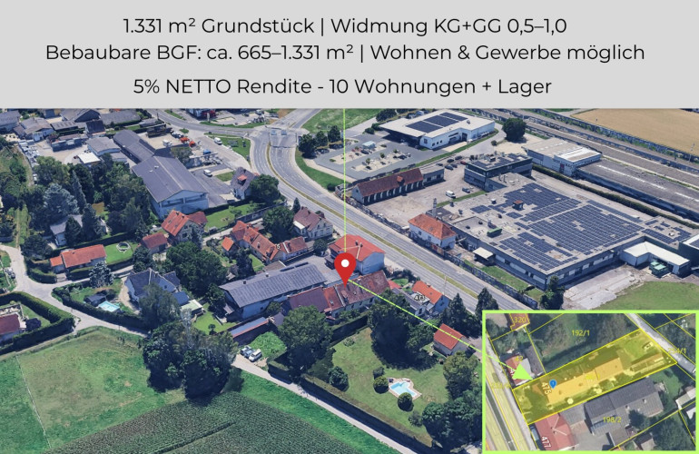 Gleichzeitig bietet die Liegenschaft aufgrund ihrer Lage und Grundstückssituation auch interessantes Entwicklungspotenzial für die Zukunft. In einem mittelfristigen Zeitraum, beispielsweise innerhalb der nächsten Jahre, könnte – vorbehaltlich behördlicher Genehmigungen – eine Neuentwicklung in Form eines modernen Neubaus, eines Bauherrenmodells oder von Eigentumswohnungen zum Abverkauf eine attraktive Option darstellen.