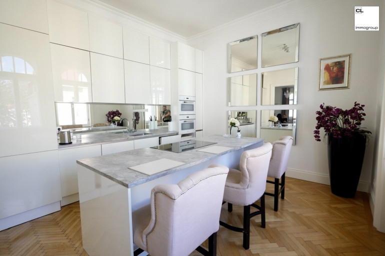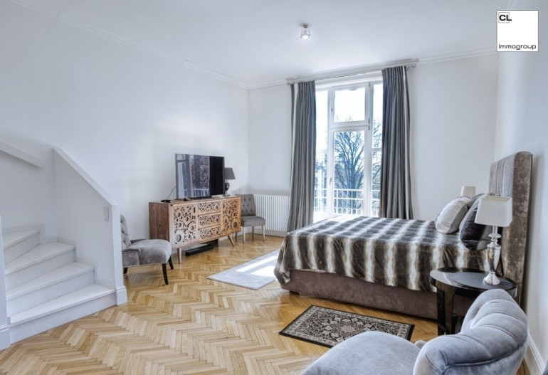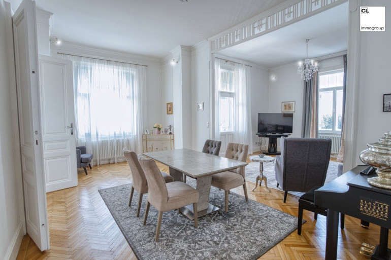 Diese großzügige 7-Zimmer-Wohnung mit ca. 239 m² Wohnfläche vereint klassischen Altbaucharme mit hochwertigem Wohnkomfort und bietet ein repräsentatives Wohnambiente auf höchstem Niveau. Stilprägende Elemente wie Fischgrätparkett und elegante Flügeltüren unterstreichen den besonderen Charakter der Immobilie.