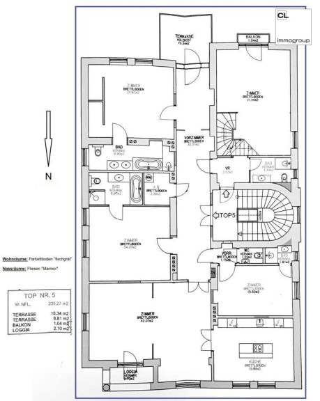 Parkett, Fliesen, Etagenheizung, Personenaufzug, Nordbalkon, Südbalkon, Bad mit Fenster, Badewanne, Dusche