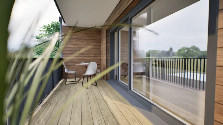 Jede Einheit verfügt über einen Balkon, bzw. eine schöne Terrasse mit Blick auf die Saualpe und die Karawanken.