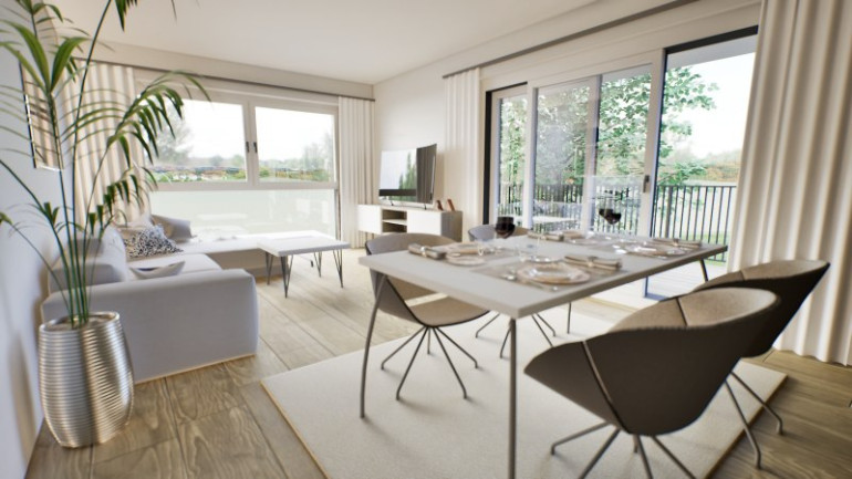Die TOP 4 im 1. OG besteht aus einem Vorraum, einen Wohn- Esszimmer mit Küche, einem Schlafzimmer, Bad und WC. Zur Immobilie gehören weiters ein Grünflächenanteil im Eigentum von ca. 92 m², ein Balkon mit 13 m², ein Kellerabteil und ein TG-Platz.