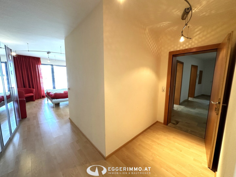 In dieser Etage befindet sich der Vorraum, ein WC und ein Abstellraum / Waschküche. Vom Wohnzimmer und von der Küche gelangt man auf den langen, sonnigen ca 35m² großen Balkon.