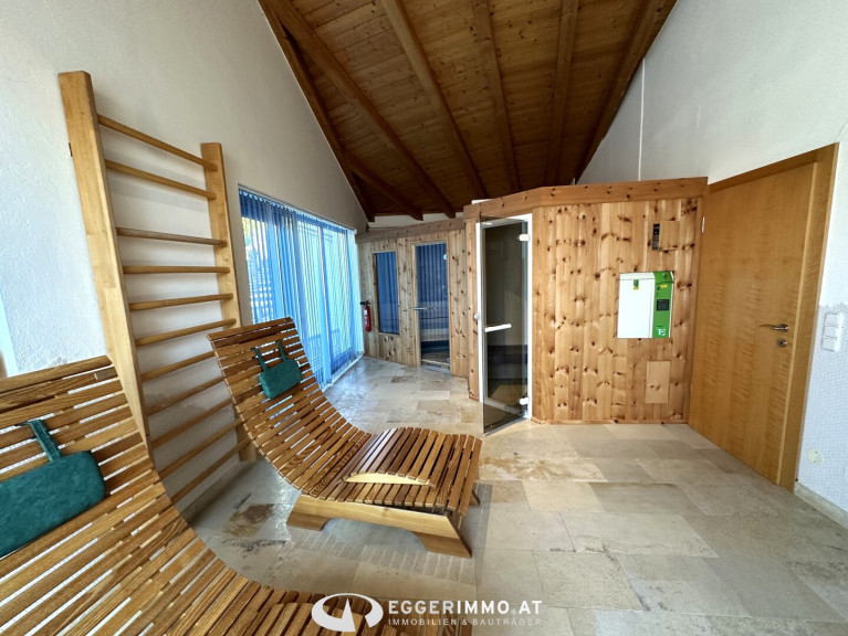Im ca. 41m² großem Wellnessraum befinden sich eine Sauna, ein Dampfbad, ein Whirlpool und eine Dusche.