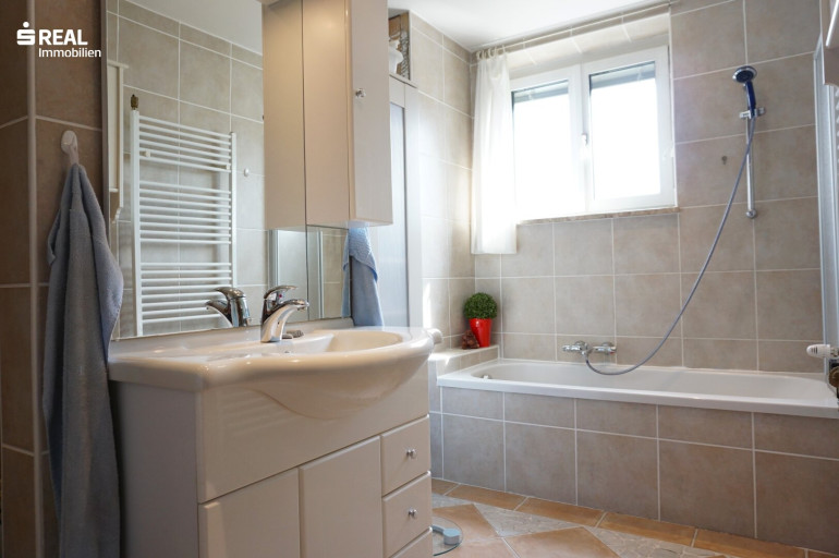 Fliesen, Parkett, Gas, Wohnküche / offene Küche, Bad mit Fenster, Badewanne