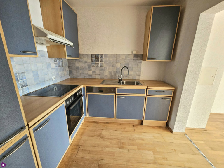 kleine Einbauküche (Herd, Kühlschrank mit Gefrierfach, Dunstabzug, Geschirrspüler), Fiesen- und Parkettböden, 2-fach Isolierverglasung mit Alu-Kunststoff; Fernwärme- Heizung