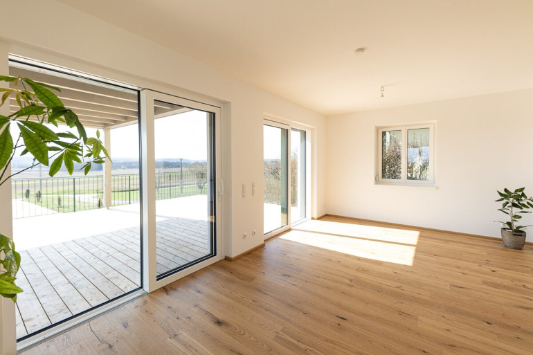 Ihren Anspruch auf eine gehobene Wohnsituation wird dieses Einfamilienhaus ( fertig gestellt März 2026 ) mit einer Gesamtnutzfläche von ca. 278 m2 in jeder Hinsicht folge leisten. Das zweigeschossige, in Ziegel Massivbauweise errichtete Gebäude erfüllt beste Qualitätsstandards und ist auf höchstem Level ausgestattet. Mit viel Feingefühl wurden die hochwertigen Materialen für den ca. 181 m2 großen Wohnbereich selektiert, eine moderne Einbauküche inkl. stilvollem Tischherd ist bereits vorhanden, ebenso wie die voll ausgestatteten Bäder und WC`s - einzig die individuelle Einrichtung der Räumlichkeiten ist noch von den neuen Eigentümern zu gestalten. In beiden Etagen wurde eine vollflächige Fussbodenheizung installiert welche mittels kostengünstiger Erdwärme betrieben wird, ebenso sind Vorkehrungen für die Installation einer Photovoltaik Anlage getroffen worden.