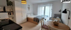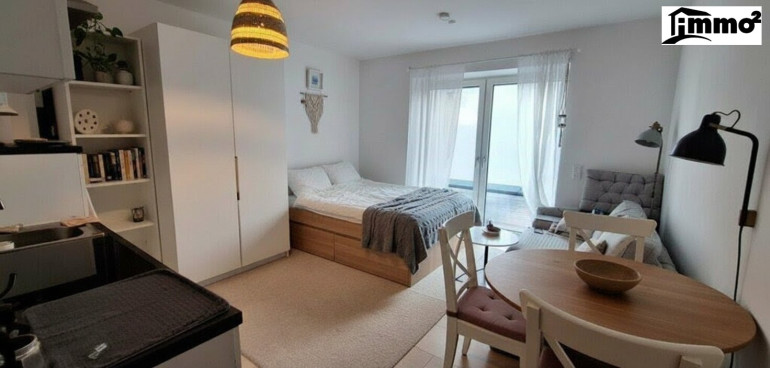 - Vorraum, Küche sowie kombinierter Wohn- und Schlafbereich mit Zugang zur Terrasse