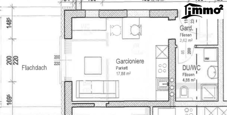 - Fläche inkl. Terrasse: ca. 33,90 m² (Garçonnière)