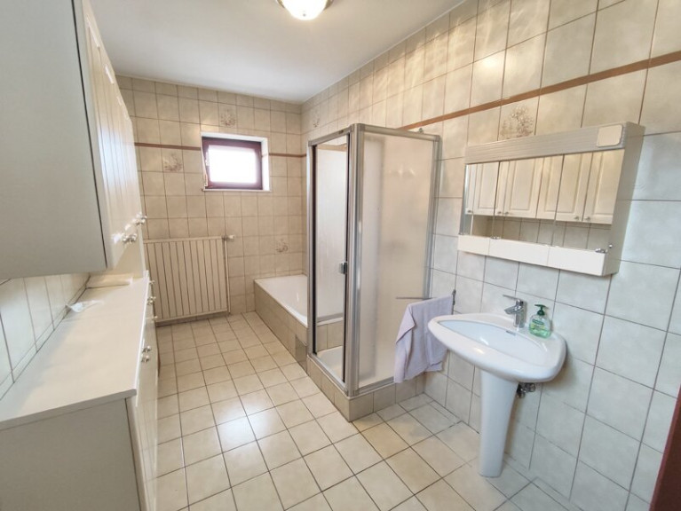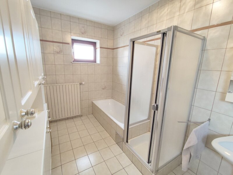 Parkett, Estrichboden, Fliesen, Gas, Zentralheizung, Einbauküche, Bad mit Fenster, Badewanne, Dusche, Kabel/Satelliten-TV, Garage