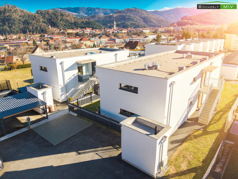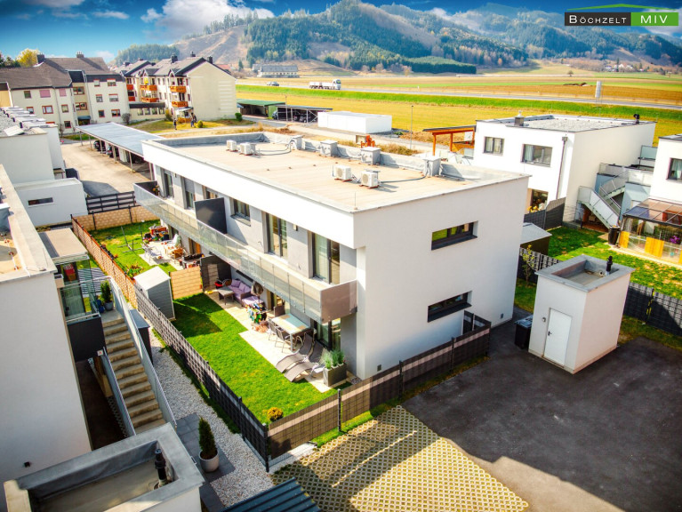 Klimatisierte Neubau-Anlegerwohnung mit 3 Zimmern, 90 m² Garten und 2 Parkplätzen in moderner Siedlung in Wasendorf