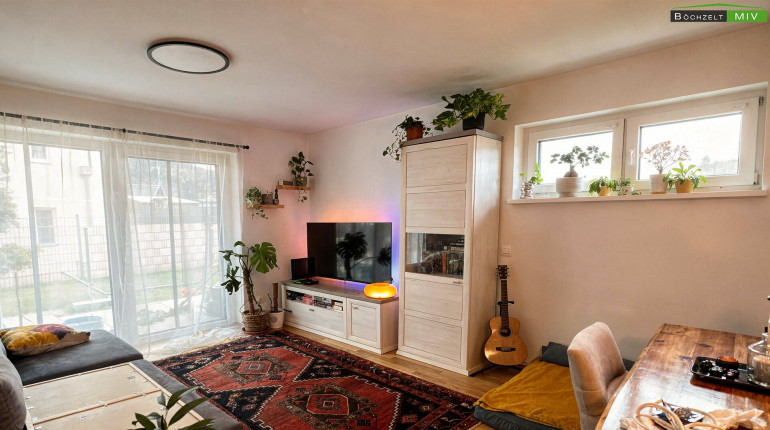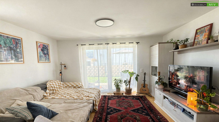 Zum Verkauf gelangt eine moderne 3-Zimmer-Gartenwohnung mit Eigengarten und Terrasse in einem kleinen Haus mit nur 4 Wohneinheiten. Die Wohnung liegt im Erdgeschoss und verfügt über eine Wohnnutzfläche von rund 74,3 m² laut Topografie. Herzstück ist der helle Wohn-Essbereich mit Zugang auf die großzügige Terrasse und in den Eigengarten. Die hochwertige Einbauküche ist im Kaufpreis von EUR 229.000,- bereits enthalten, ebenso wie zwei zugeordnete KFZ-Abstellplätze samt E-Ladestation direkt bei der Liegenschaft.