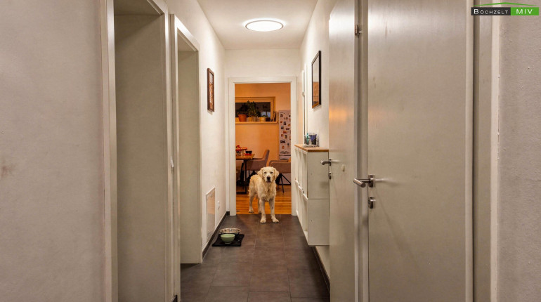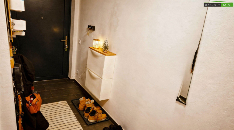 - Ein zentraler Vorraum mit ca. 9,68 m² erschließt alle Räume und bietet Platz für Garderobe und Stauraum.