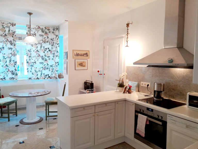 Die hochwertige Ausstattung der Immobilie lässt keine Wünsche offen. Fliesen, Parkett und Steinboden verleihen den Wohnräumen eine elegante Note. Die moderne Einbauküche ist ideal für kulinarische Experimente und gesellige Abende. Die Zentralheizung sorgt für wohlige Wärme, während der Personenaufzug den Zugang zu allen Etagen erleichtert.