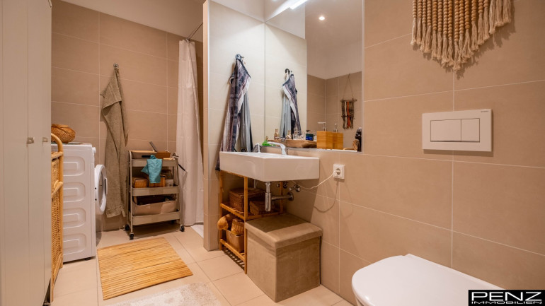 Die Wohnung ist nicht nur hochwertig ausgestattet, sondern auch sicher. Ein modernes Sicherheitssystem mit Kameras sorgt für ein gutes Gefühl, während der Lasten- und Personenaufzug den Zugang zu Ihrer neuen Wohnung erleichtert. Der praktische Wasch- und Trockenraum ist eine weitere nützliche Ergänzung, die Ihnen den Alltag erleichtert.
