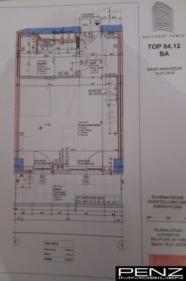 Auf der vierten Etage des Urfahraner Brucknertowers erwartet Sie eine lichtdurchflutete Wohnfläche von 34 m², die optimal genutzt wurde.