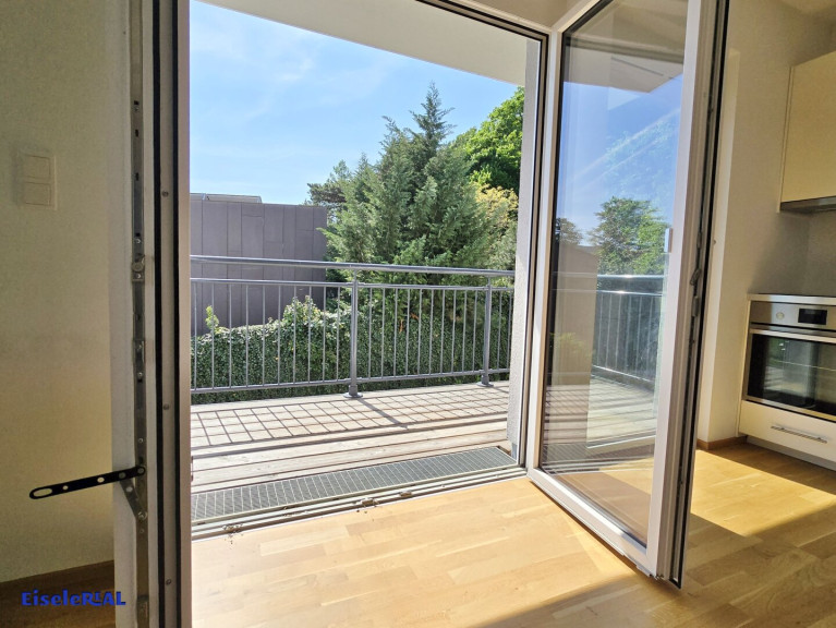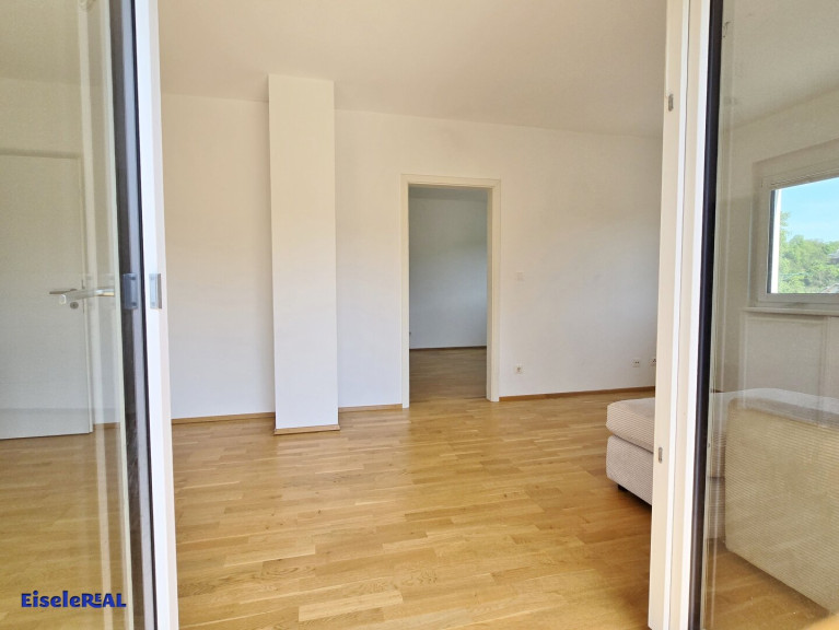 Vom zentralen Vorraum aus gelangen Sie in das traumhafte, sonnige Wohnzimmer mit räumlich gut integrierter, moderner Komplettküche. Das Schlafzimmer ist extra begehbar.
