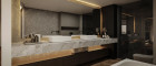 Das großzügige Badezimmer überzeugt mit hochwertiger Ausstattung inklusive Badewanne, Dusche und direktem Zugang zum Wellnessbereich mit Sauna – ein Konzept, das modernes Wohnen mit exklusiver Spa-Atmosphäre vereint.