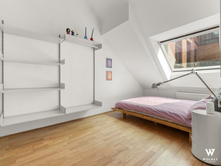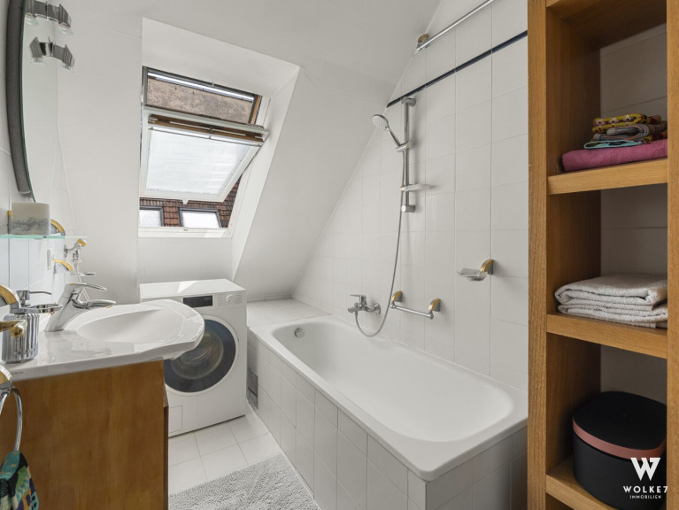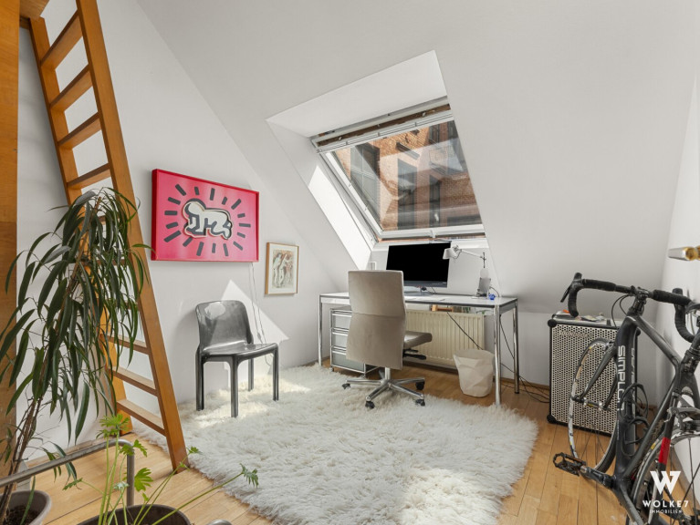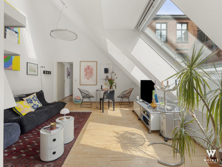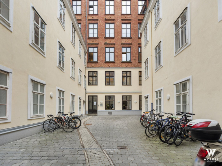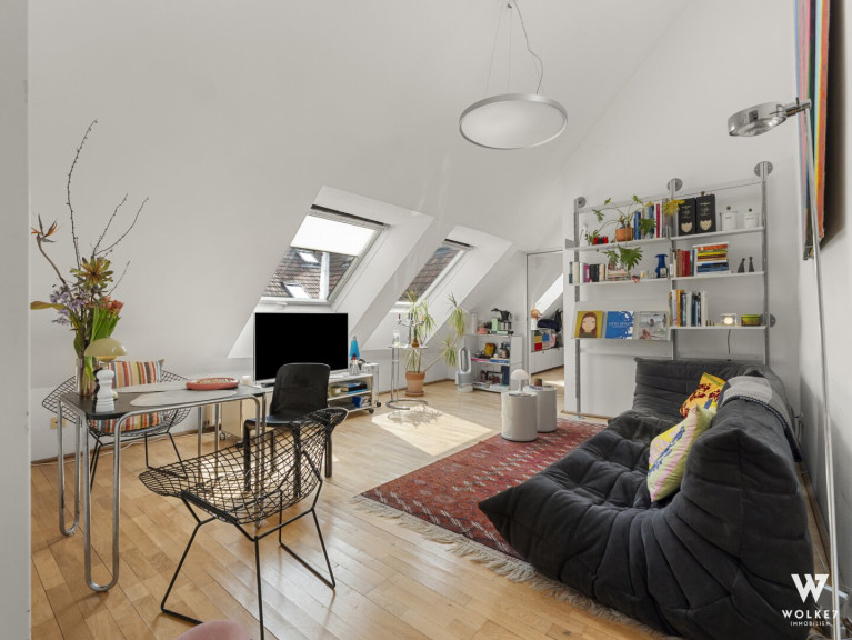 Hier erwartet Sie ein wahres Dachgeschossjuwel, das mit seiner beeindruckenden Raumhöhe von ca. 6 m sofort fasziniert und ein einzigartiges Gefühl von Weite, Offenheit und exklusivem Wohnkomfort vermittelt. Auf ca. 64,88 m² entfaltet sich eine harmonisch durchdachte Raumstruktur mit vielseitigen Nutzungsmöglichkeiten. Bereits beim Betreten empfängt Sie einer der beiden Vorräume und führt in das beeindruckende Wohnzimmer, das durch hochwertige VELUX-Holzfenster in sanftes Tageslicht getaucht wird und einen ruhigen Blick in den Innenhof eröffnet. Trotz dieser außergewöhnlichen Ruhe liegt die Wohnung nur ca. 2 Gehminuten von der pulsierenden Mariahilfer Straße entfernt. Angrenzend befindet sich die separate Küche mit Einbauküche, die ausreichend Raum für kulinarische Entfaltung bietet. Über den zweiten Vorraum erschließt sich das Badezimmer, das mit einer Badewanne sowie einem Fenster für natürliche Belüftung ausgestattet ist. Das Schlafzimmer präsentiert sich als angenehme Rückzugsoase, während das zusätzliche Kabinett mit integrierter Schlafebene vielseitige Nutzungsmöglichkeiten eröffnet: ob als weiterer Schlafbereich oder Home-Office. Die südöstliche Ausrichtung sorgt für angenehme Vormittagssonne und lichtdurchflutete Wohnräume bereits in den frühen Stunden des Tages. Abgerundet wird das besondere Wohnambiente durch die durchdachte Raumaufteilung, edlen Parkettboden sowie die ruhige Innenhoflage.