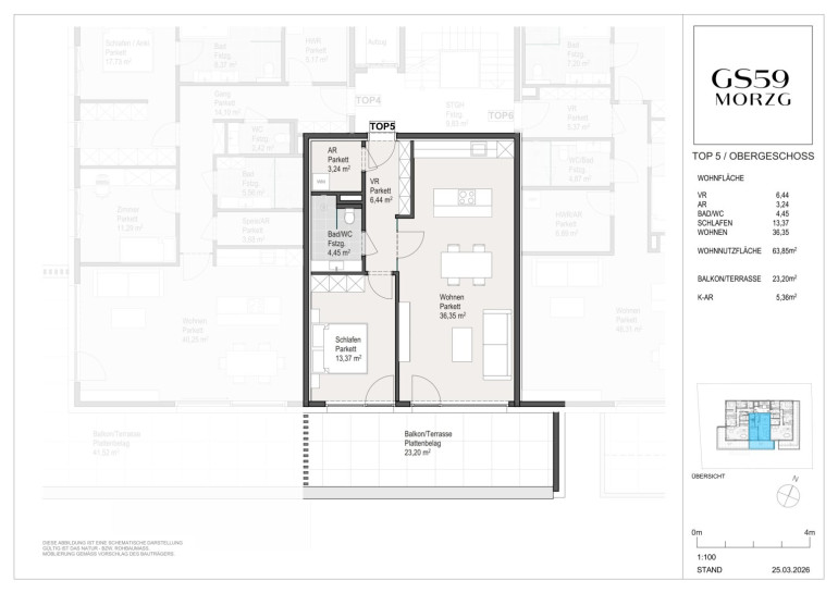 Fliesen, Parkett, Fußbodenheizung, Personenaufzug, Westbalkon, Tiefgarage