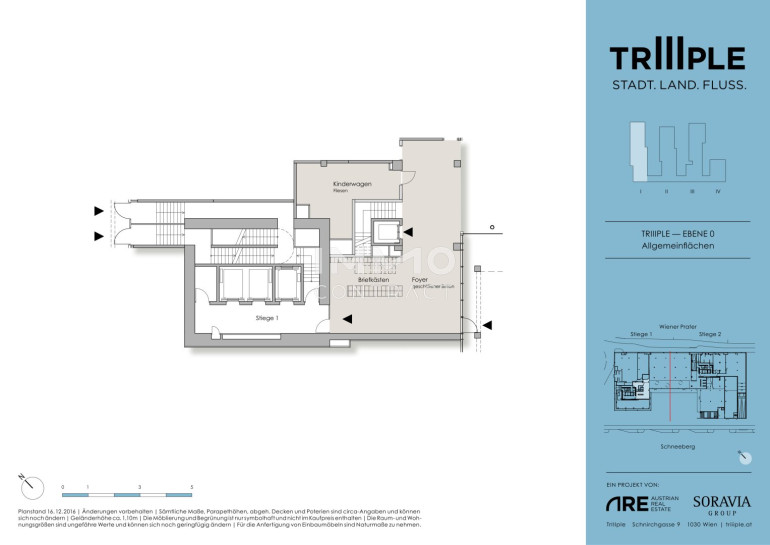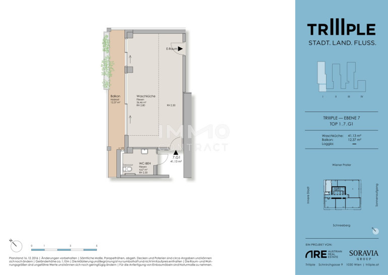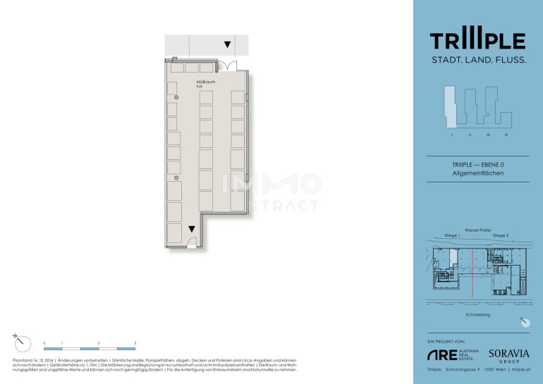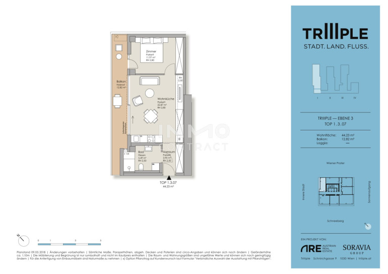 TrIIIple liegt ideal, um all Ihre Wunschdestinationen rasch und unkompliziert zu erreichen. Ideale Lage – vom TrIIIple aus erreichen Sie: • den Grünen Prater in 3 Minuten mit dem Fahrrad • die Supermärkte Spar und Billa sowie einen Bipa in 5 Minuten zu Fuß – zusätzlich zum Supermarkt direkt im Gebäude • die U3 Erdberg bzw. Schlachthausgasse in 3 Minuten zu Fuß • den Stephansplatz in 15 Minuten mit der U-Bahn • den Hauptbahnhof in 13 Minuten mit der Straßenbahn • den Flughafen Wien-Schwechat in 12 Minuten mit dem PKW