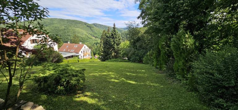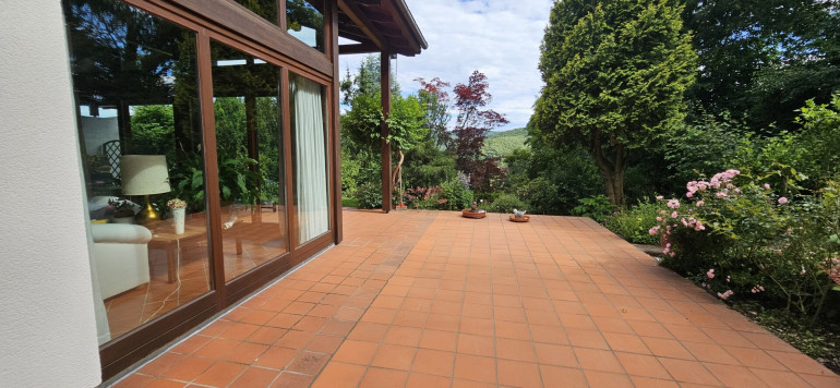 Genießen Sie von hier aus den atemberaubenden Blick auf die sanften Hügel der Umgebung und den liebevoll gestalteten Garten. Das Haus liegt in einer wahren Ruheoase, umgeben von der üppigen Natur, sodass Sie aus jedem Fenster nur das beruhigende Grün der Umgebung erblicken. Dank der Südostausrichtung der Stirnseite sind der gesamte Wohnbereich und beide Terrassen lichtdurchflutet und laden zum Verweilen ein. Hier finden Sie den perfekten Rückzugsort, um dem hektischen Alltag zu entfliehen.
