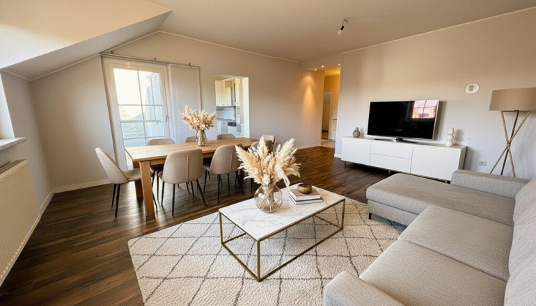 - Großzügiger Wohn-/Essbereich mit Kaminanschluss und direktem Zugang zur Loggia