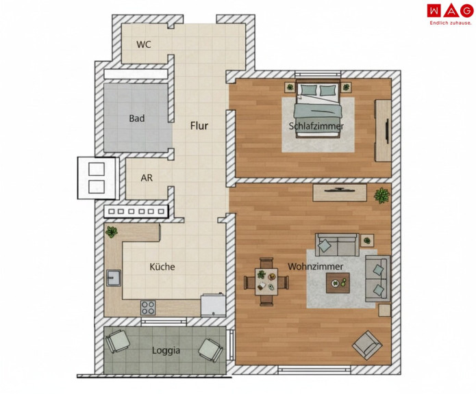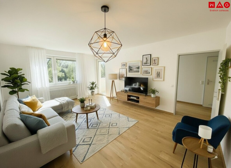 Die Wohnung befindet sich in der Sanierung und steht als Erstbezugswohnung nach der Sanierung ab 01.07.2026 zur Verfügung! Die Dekoration/Einrichtungsgegenstände dienen als lediglich als Einrichtungsbeispiel und wurden durch KI generiert. Die Wohnung wird leer, ohne Möbel und ohne Deko vermietet.
