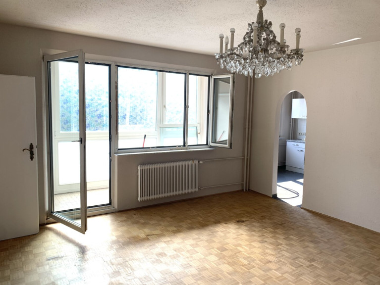 Diese gut geschnittene Wohnung überzeugt durch ihre großzügigen Räume und eine klassische, funktionale Raumaufteilung. Der helle Wohnbereich bietet viel Platz und direkten Zugang zur Loggia, die zusätzlichen Wohnkomfort schafft.