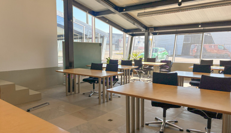 Im EG befinden sich klassische Büroräume sowie Schulungsräume, Teeküche und Besprechungsraum wie auch Sanitäreinheiten.