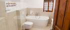 - Modernes Badezimmer mit Badewanne, Dusche und WC