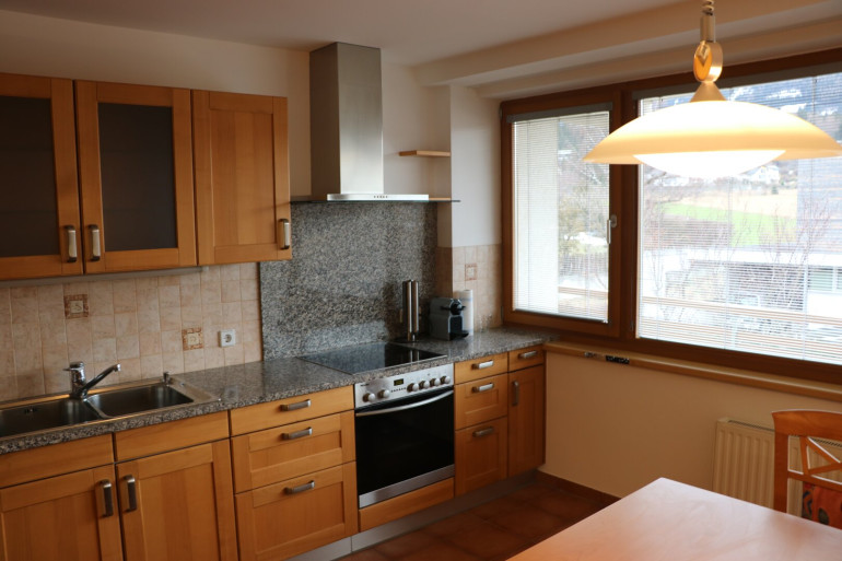 Fliesen, Parkettboden, Öl, Zentralheizung, Einbauküche, Wohnküche / offene Küche, Personenaufzug, Bad mit Fenster, Badewanne, Dusche, Carport