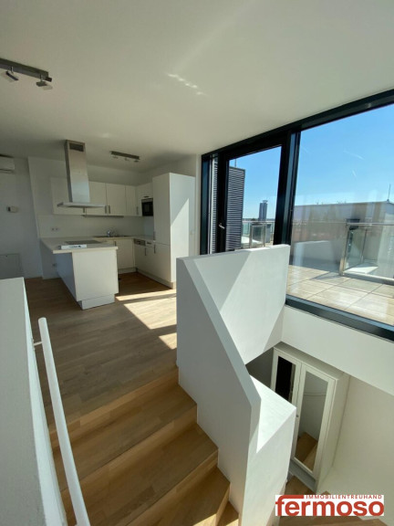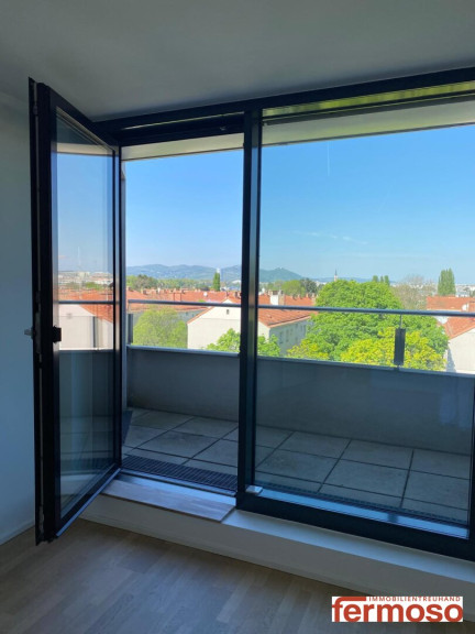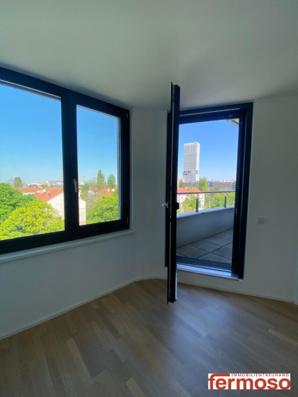 DG-Maisonette mit Wow-Effekt: Diese lichtdurchflutete DG-Maisonette auf zwei Ebenen begeistert mit drei Terrassen und spektakulärem Panoramablick auf Donau, Berge und Stadt. Zwei Schlafzimmer mit direktem Zugang zur Terrasse, ein großzügiger Wohn-Küchenbereich mit Ausblick beim Kochen – hier verschmelzen Wohnkomfort und Aussicht zu einem einzigartigen Erlebnis. Die große Hauptterrasse lädt zum Entspannen über den Dächern Wiens ein – ein Ort, der jeden Tag aufs Neue fasziniert.