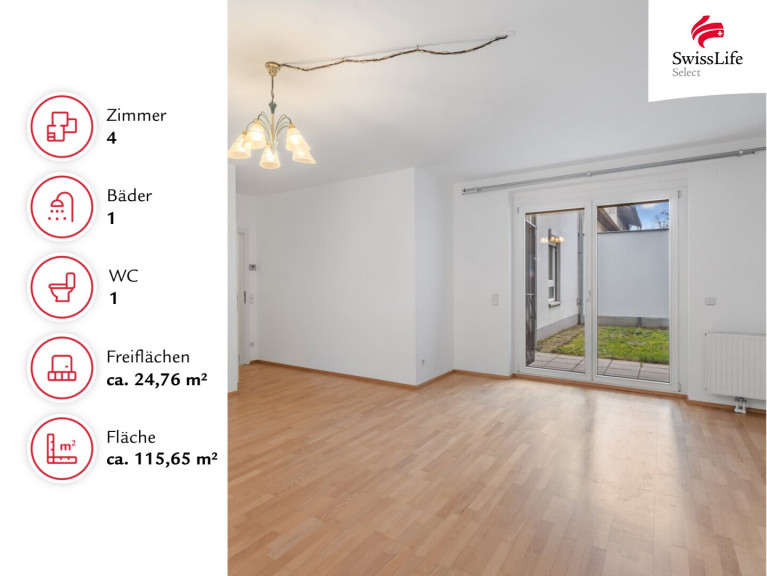 Die im Jahr 2006 errichtete Neubauwohnung befindet sich im Erdgeschoss einer gepflegten Wohnanlage und bietet mit rund 115,65 m² Wohnfläche ausreichend Platz für die ganze Familie.
