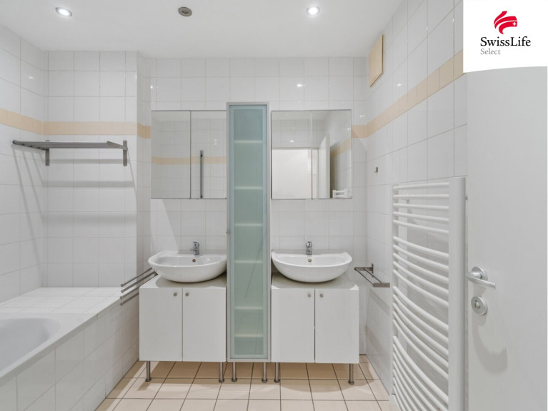 - Großzügiges Badezimmer mit Badewanne und Doppelwaschbecken