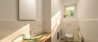 Diese Ebene ist ganz dem Thema Erholung und Rückzug gewidmet. Der großzügige Wellnessbereich bildet das Herzstück des Erdgeschosses und verfügt über einen Indoorpool, ein Dampfbad, eine Sauna, ein Solarium sowie komfortable Duschmöglichkeiten und ein separates WC.