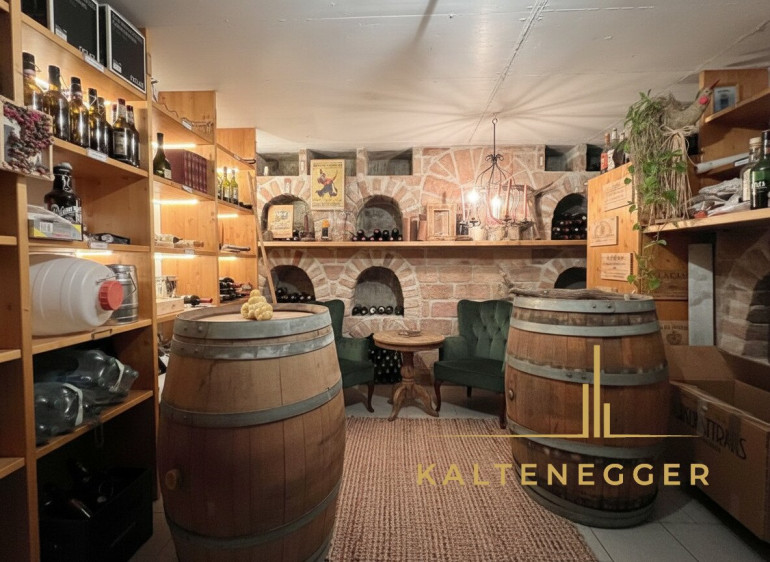 Eine Besonderheit dieser Ebene – dem Baujahr des Hauses entsprechend – ist der rund 17 m² große Schutzraum samt einem vorgelagerten, etwa 9 m² großen Vorraum. Aktuell wird der Vorraum als Werkstatt genutzt, während der Schutzraum selbst als Weinkeller dient und ideale Bedingungen für die Lagerung edler Tropfen bietet.